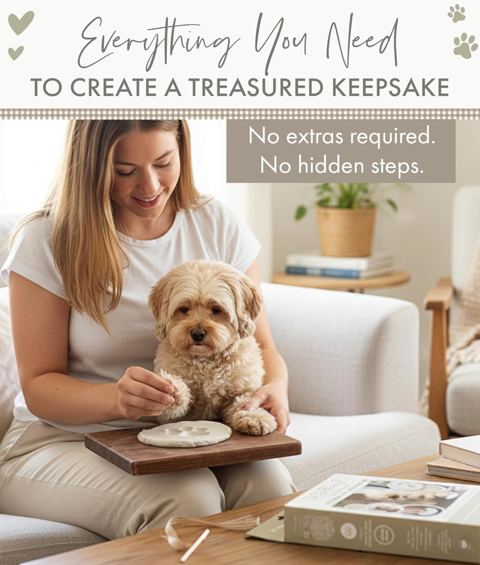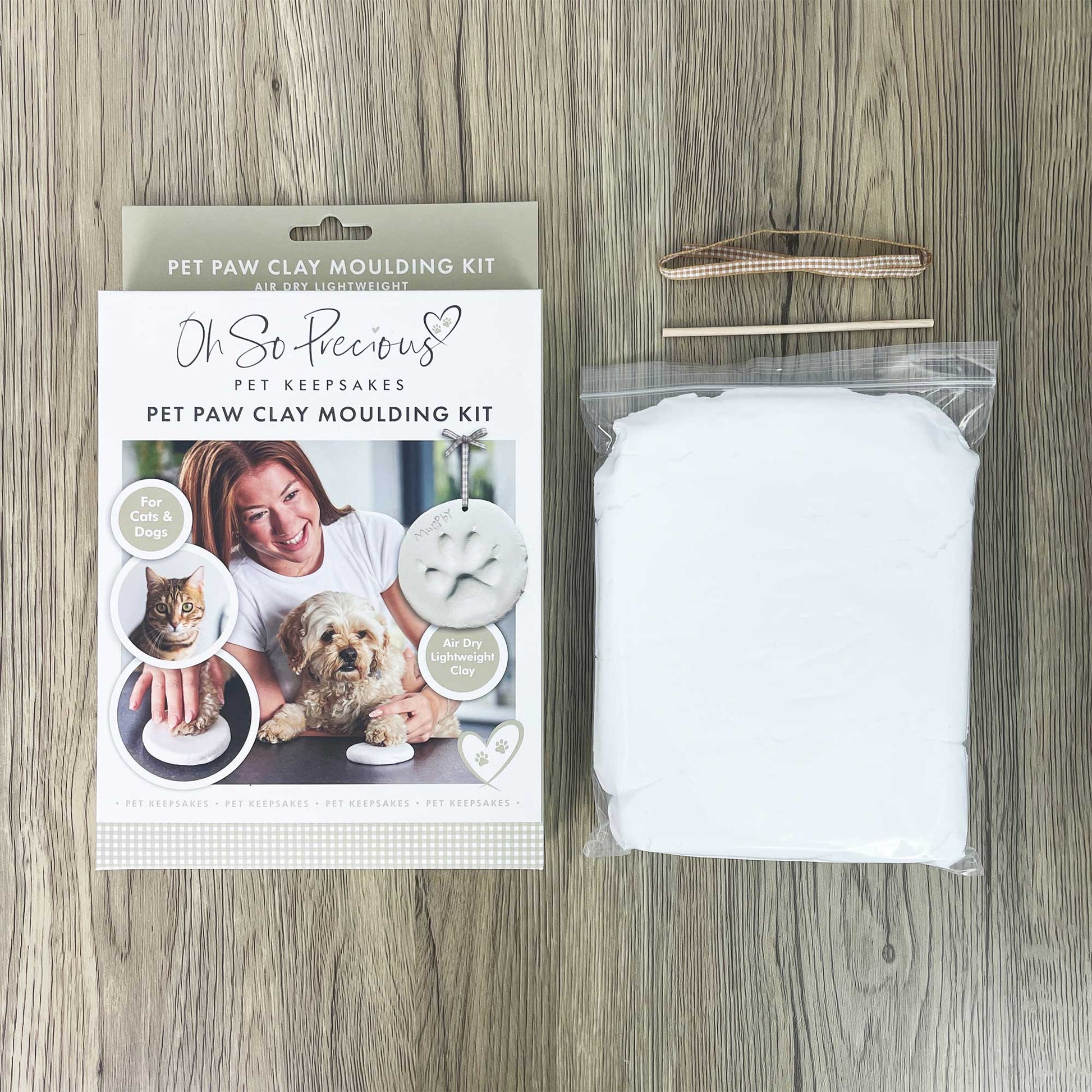 Make a special paw print keepsake while your pet is relaxed. Follow these steps: First, make sure the air dry lightweight clay is cool. Next, ensure your pet's paw is clean and dry. Then, gently knead the clay to soften it and roll it out to a minimum of 1cm. Press the paw firmly into the clay and lift. Let the impression dry for 24 hours, turning it over at the 12 hour mark. For best results, leave it to dry for approximately 7 days.